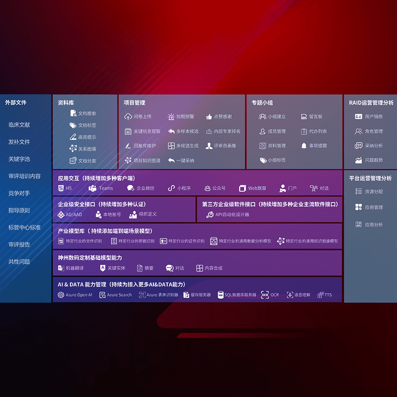 医疗器械产品上市前,,要熟悉严格与繁复评审标准,,,,整理分析监管机构指导文件中的海量信息。。。。企业急需一个智能化解决方案,,,,提升知识管理效率,,提高评审通过率,,,,以提升其市场竞争力。。。
